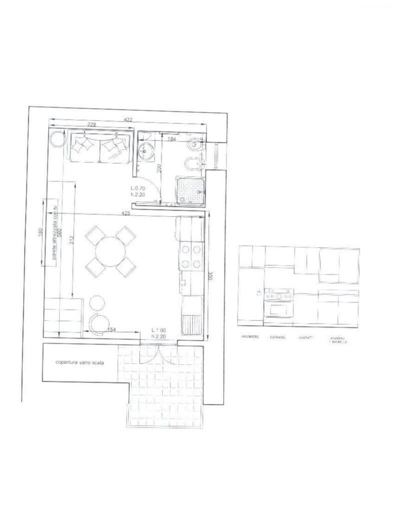 Piccola casa di due piani, di un immobile recentemente ristrutturato, composto da una cucina openspace, due bagni, e una camera con cabina armadio.