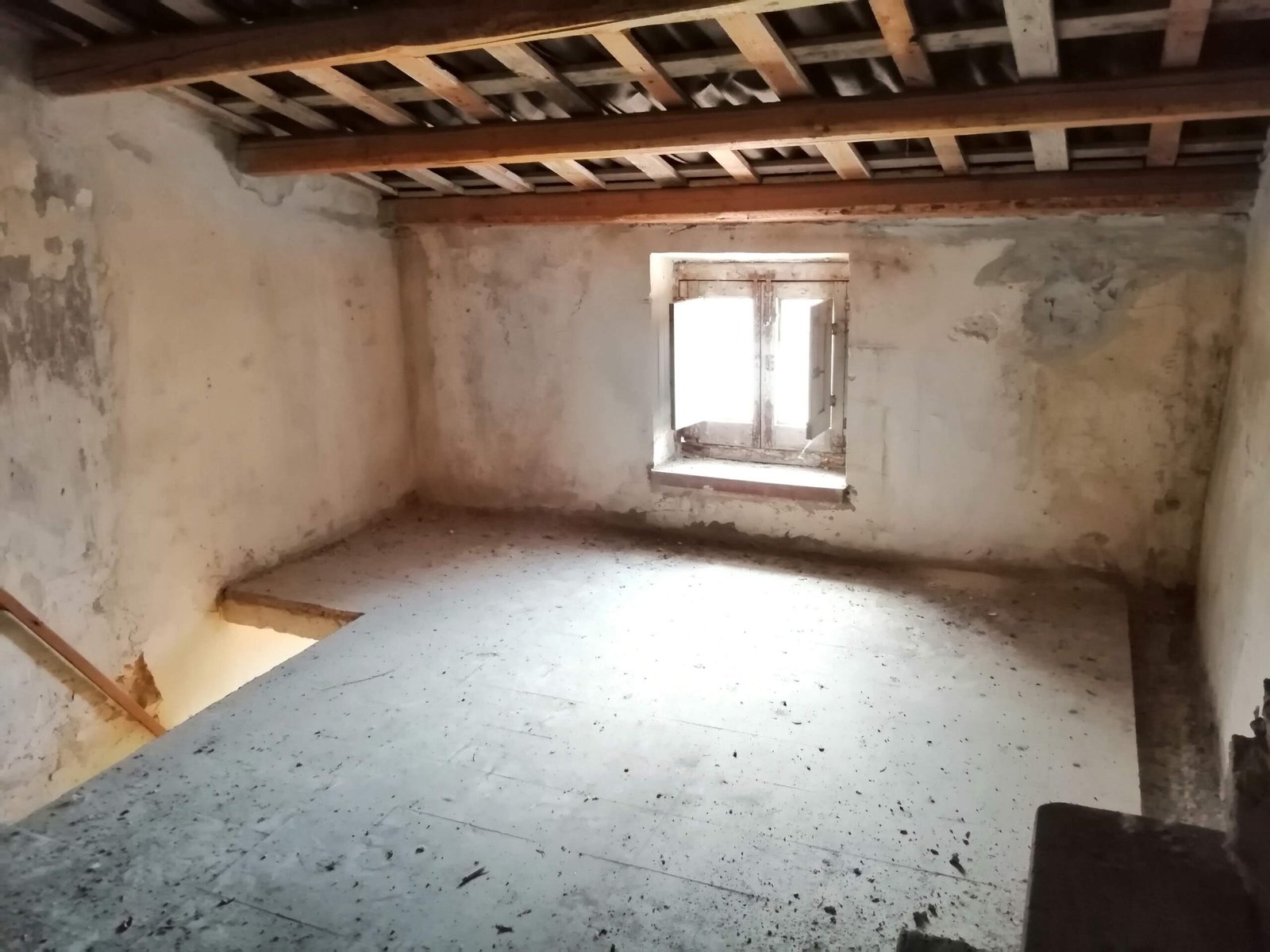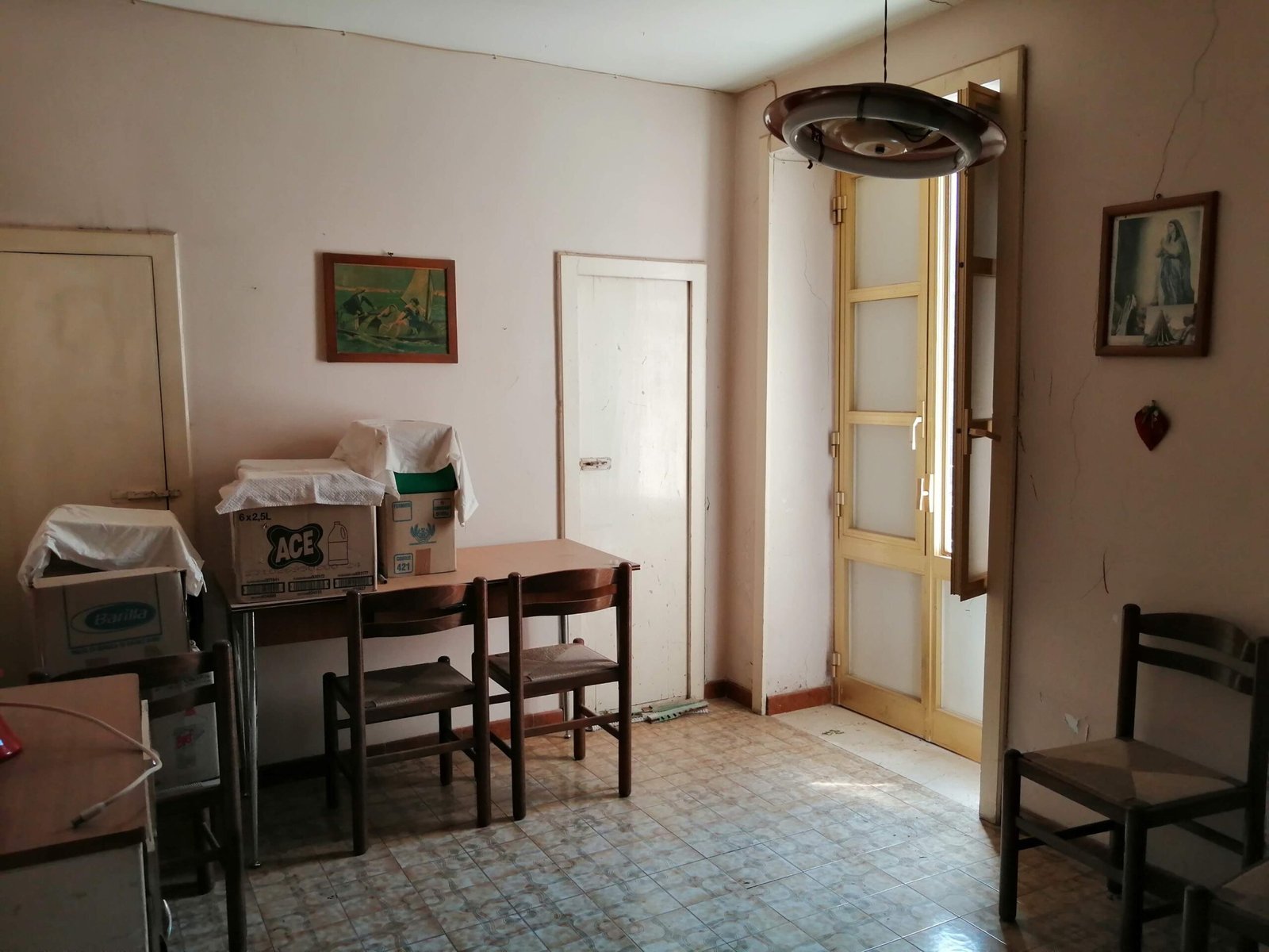 Casa singola di due piani da ristrutturare, composta da una cucina con zona pranzo, un bagno, un ripostiglio e una camera.